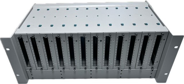 19" patchpanel pro 12 kazet. Každou kazeu je možno osadit 12 spojkami SC/simplex nebo 12 spojkami LC simplex. Při plném osazení patchpanelu je hustota 144 vláken (SC)/ 288 (LC duplex)