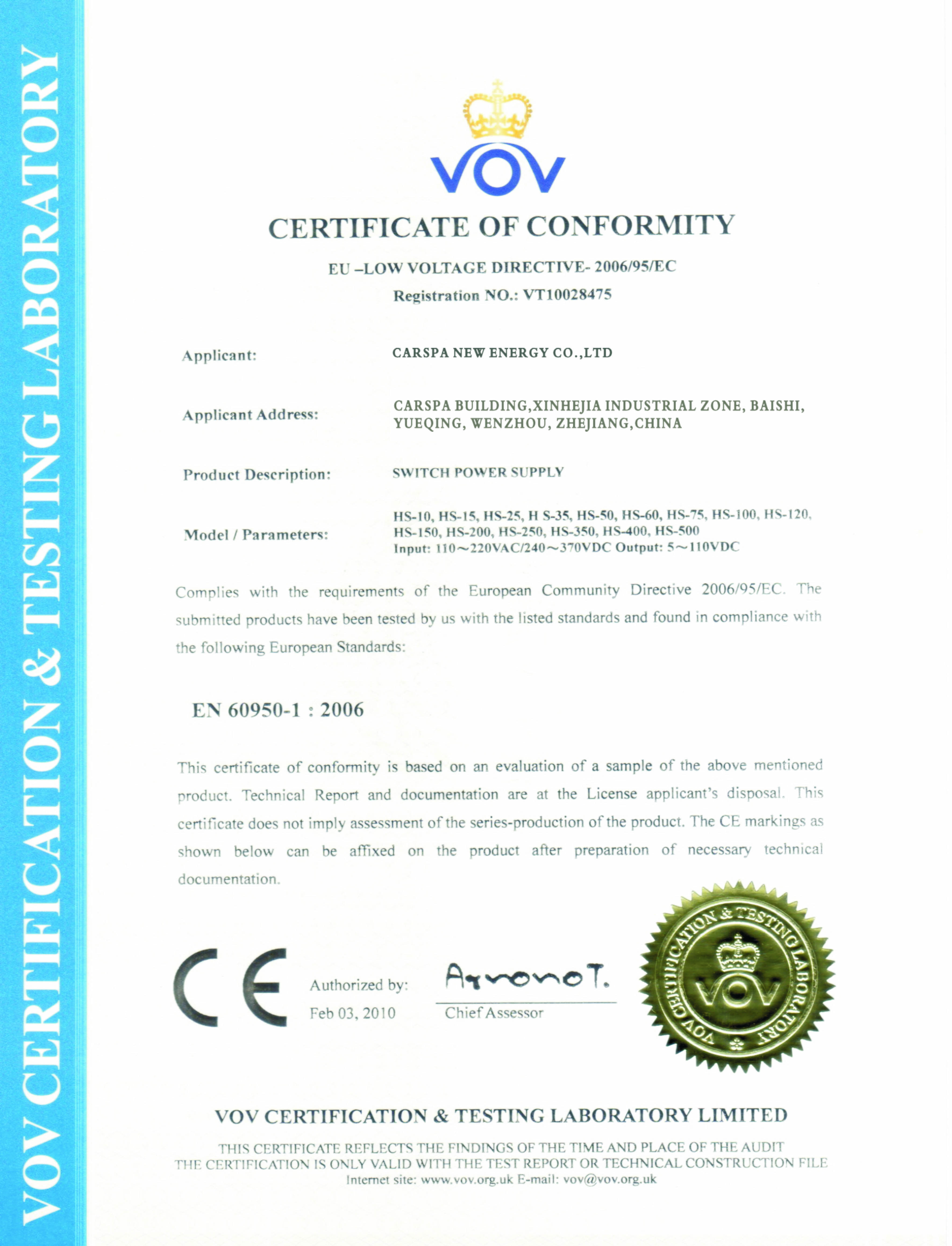 Carspa HS-250/24, Průmyslový spínaný zdroj 24V/10A, 250W