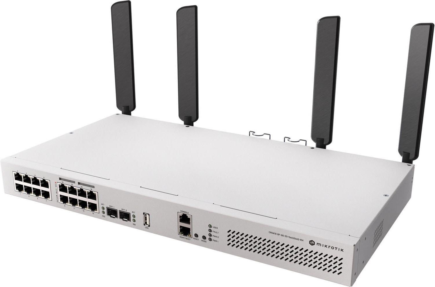 Switch MikroTik CRS418-8P-8G-2S+5axQ2axQ-RM je univerzální zařízení kombinující výkonný PoE switch a dvoupásmový Wi-Fi 6 access point. Nabízí podporu PoE 802.3af/at i 24 V pasivního PoE s celkovým PoE budgetem 150 W. Zařízení je vybaveno 17 gigabitovými RJ45 porty, z nichž porty 9 až 16 podporují PoE napájení. Pro optické propojení či rozšíření sítě jsou k dispozici 2× 10G SFP+ sloty.