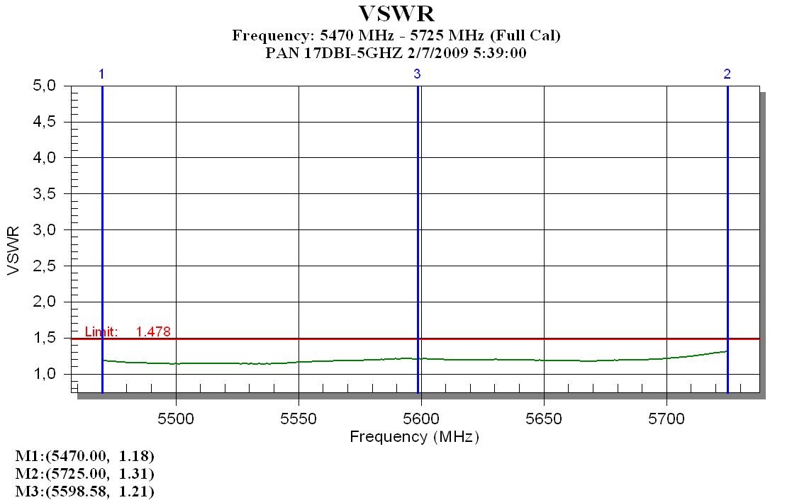 The integrated antenna has a gain of 17 dB in the 5.4 GHz band.