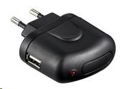 Power and charging adapter 230V for USB, 1A, suitable for charging or powering mobile phones/MP3 players and other USB devices.